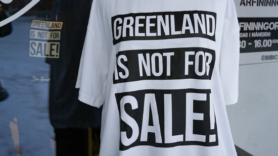 2026年1月15日,格陵兰岛努克一家商店内,一件印有“格陵兰不卖”字样的T恤正在出售。丹麦首相于当日表示,尽管美丹两国在白宫举行了高规格磋商,但美国夺取格陵兰的野心“丝毫未减”,两国之间依然存在“根本性分歧”。