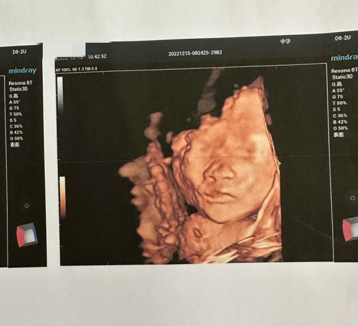 孕22周大排畸这天,他们特意选了一家允许爸爸进入B超室的医院。医生在慧慧肚子上涂上耦合剂,拿起探头滑动。宝宝很“配合”,先是小脚丫,再是小屁股、又看到孩子的整个背部,还看到孩子的后脑勺,最后面,孩子终于把脸露了出来。