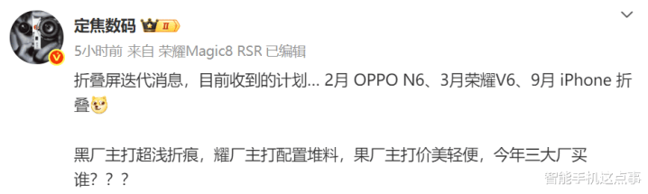 只是没有想到的是,近期有博主曝光了一份足以让数码圈地震的发布计划,从2月到9月,OPPO、荣耀、苹果三强争霸的格局已经成型。