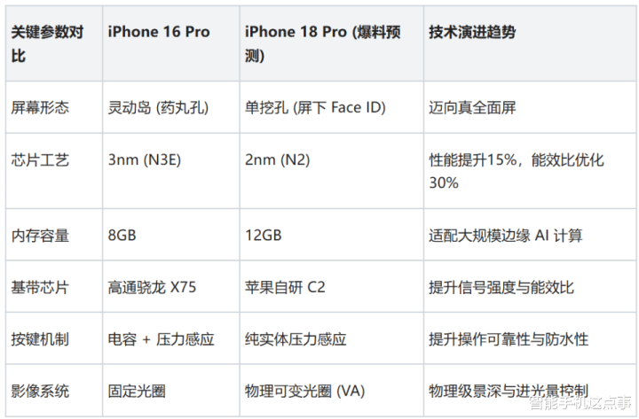 众所周知,iPhone18 Pro 系列预计将成为苹果近年来硬件跨度最大的一次更迭,其核心变革集中在以下四点。