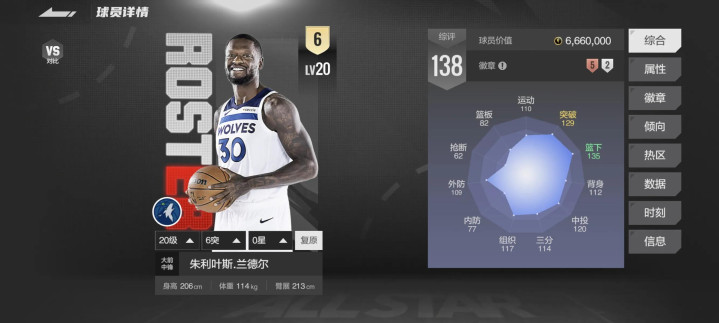 作为游戏中的简版詹姆斯可能受森林狼的战绩影响兰德尔一直无法发挥最大实力,但是随着森林狼战绩的上升必定会上升;