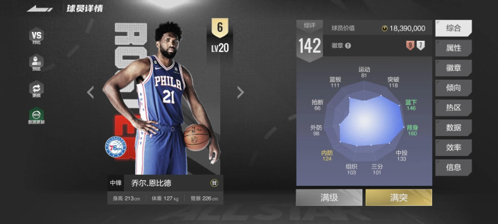 由于接连遭遇伤病的影响,大帝恩比德的数值和身价再进两次更新一路下跌,巅峰时期一度单卡200w成为游戏第二中锋,本次削弱后三分和体力基本削完,单卡一度去到了46w,不过今天打出大号三双后身价也上涨,我们也有理由相信31岁的大帝还能重回巅峰!