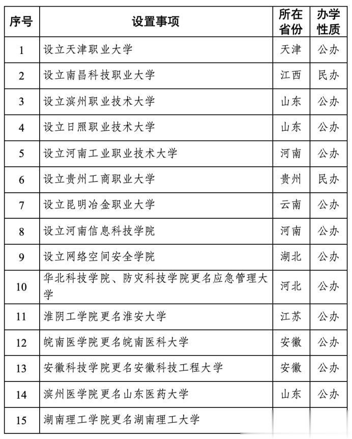 分类梳理更清晰:15所职业本科(占比超一半)、2所特殊新设本科(河南信息科技学院、网络空间安全学院)、13所“学院”升格为“大学”。这些学校分布在多个省份,为不同地区、不同分数段的考生提供了新选择。