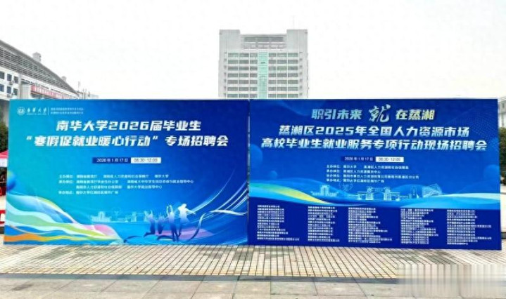 2026年1月17日上午,“职引未来 就在蒸湘”2025年高校毕业生就业服务专项行动现场招聘会在南华大学红湘校区南华广场成功举办。本次活动由南华大学与蒸湘区人力资源和社会保障局联合主办,采取“线上+线下”双线融合模式,旨在为毕业生与用人单位搭建高效对接平台。